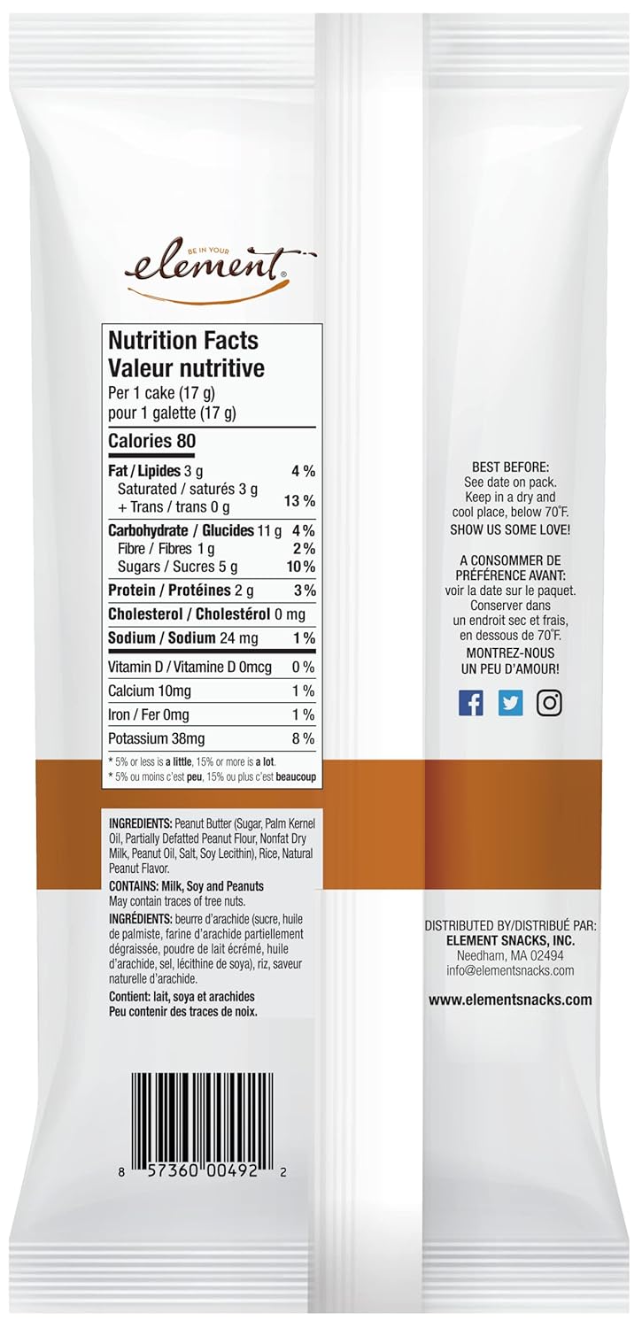 Element Snacks, Peanut Butter Topped Rice Cakes, Gluten Free & Non-GMO, 3.5 Oz (Pack of 6)