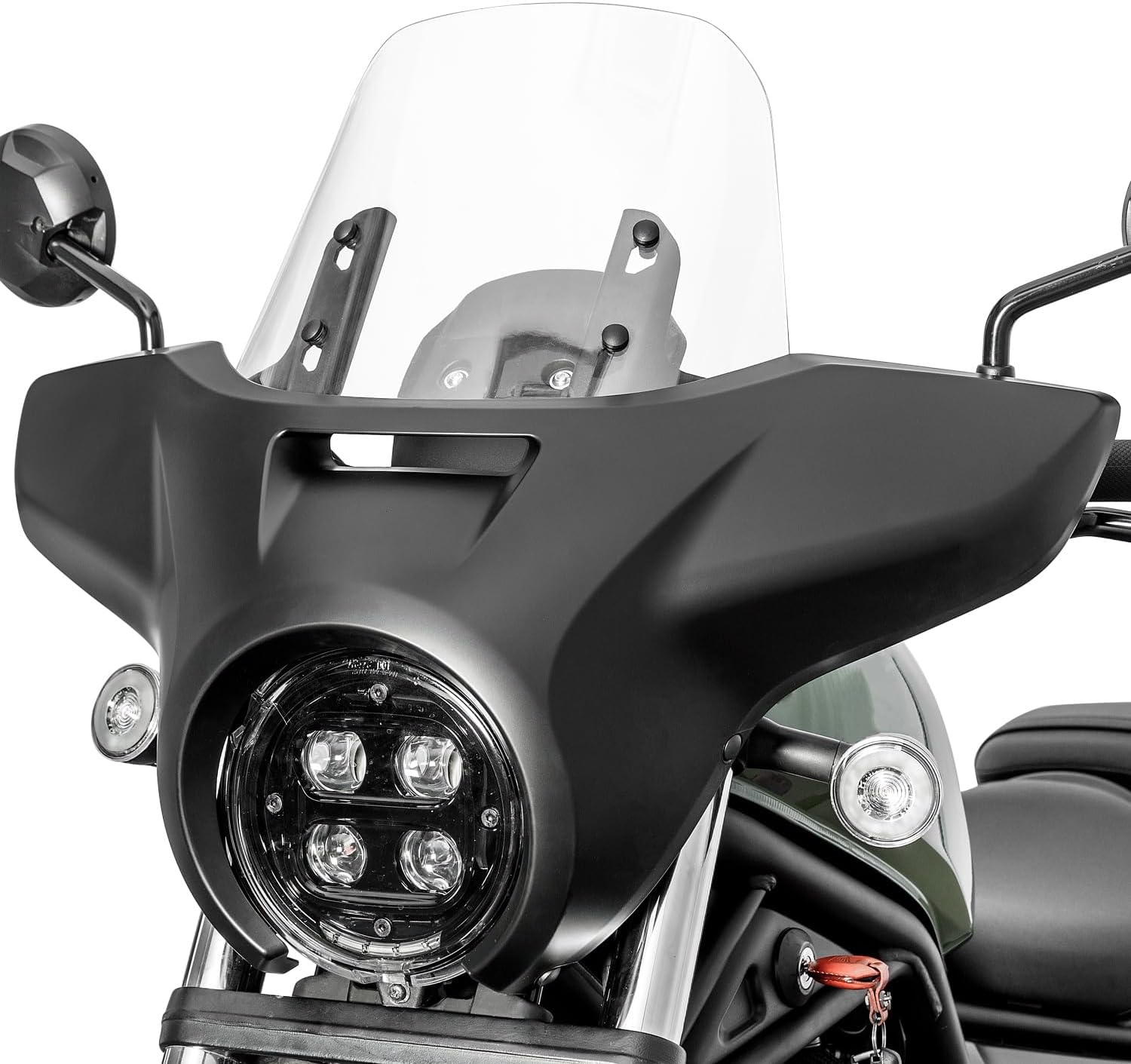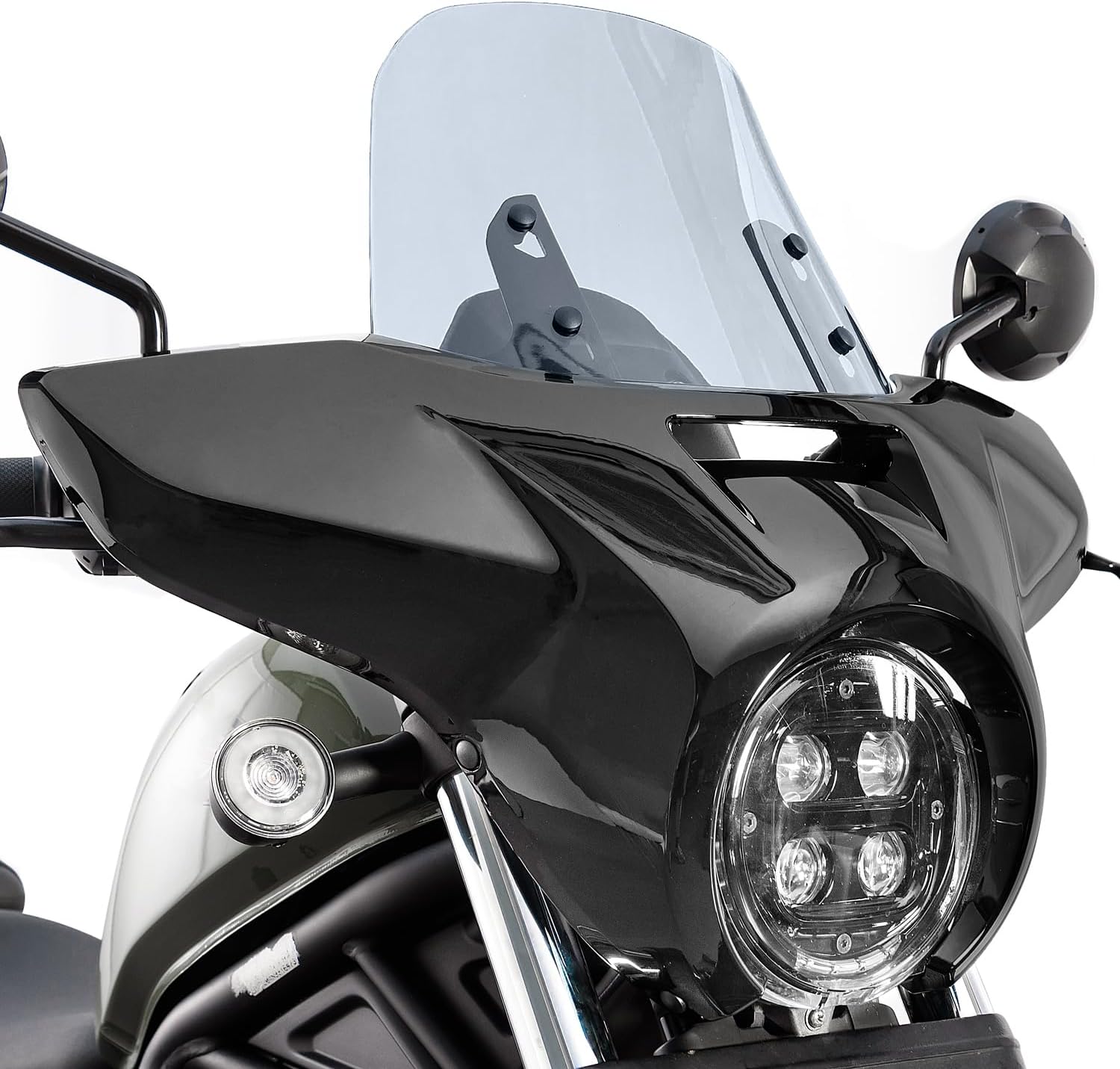 Fitment:Custom headlight cowl for CMX500 Rebel 500 2017 2018 2019 2020 2021 2022 2023 2024 2025 2026Custom headlight cowl for CMX300 Rebel 300 2020 2021 2022 2023 2024 2025 2026Warm tips:This is an aftermarket replacement part.Please note the applicable model CMX300 Rebel 300 2020-2026 / CMX500 Rebel 500 2017-2026 before purchase to prevent mistakes.Features:A more comfortable and safe experience for your ride: our front fairing shadow allow air to flow better to the rear, protecting the motorcyclist from wind. It can protect your headlights from being scratched by flying stones and sand.Its smooth lines and lively styling give your motorcycle a stylish look.Color:There are many colors to choose from, please refer to the picture.We are specialized in the production of various motorcycle accessories, welcome to our shop to see if there are products you need.