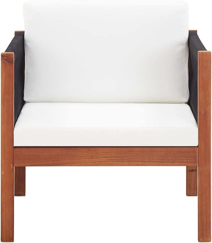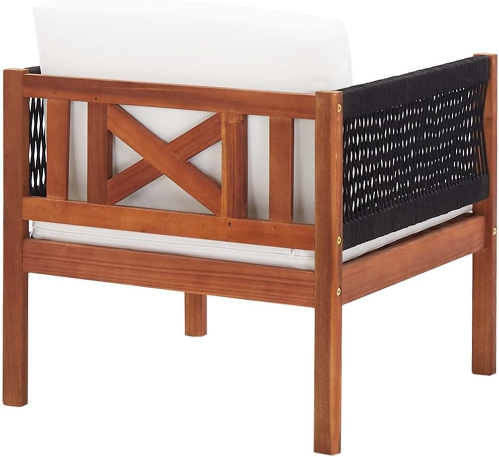 With a practical and rustic design, this patio wooden chairs will take your patio living space to the next level!Thanks to the solid acacia wood material, the chairs feature extreme durability; therefore they are suitable for outdoor use. With a distinctive rope design, the outdoor seating will be an eye-catcher. Additionally, the outdoor chairs are lightweight and easy to move around. The thickly padded cushions ensure your seating comfort.You will surely enjoy your leisure time on this lovely chairs! Delivery includes 2 chairs.Color: Natural wood Color + black (rope)Material: Solid acacia wood + ropeCushion material: 100% polyesterDimensions: 25.6" x 25.6" x 23.6" (W x D x H)Seat depth: 24.8"Seat height: 11.8"Seat height (including cushion): 13.8"Seat cushion dimensions: 22.4" x 24.8" x 2"(L x W x T)Back cushion dimensions: 22.4" x 13.8" x 3.9" (L x W x T)With distinctive rope designDelivery includes 2 chairs with cushionsWARNUNG Cushion and pad are only for outdoor use. Do not take them inside of dwelling