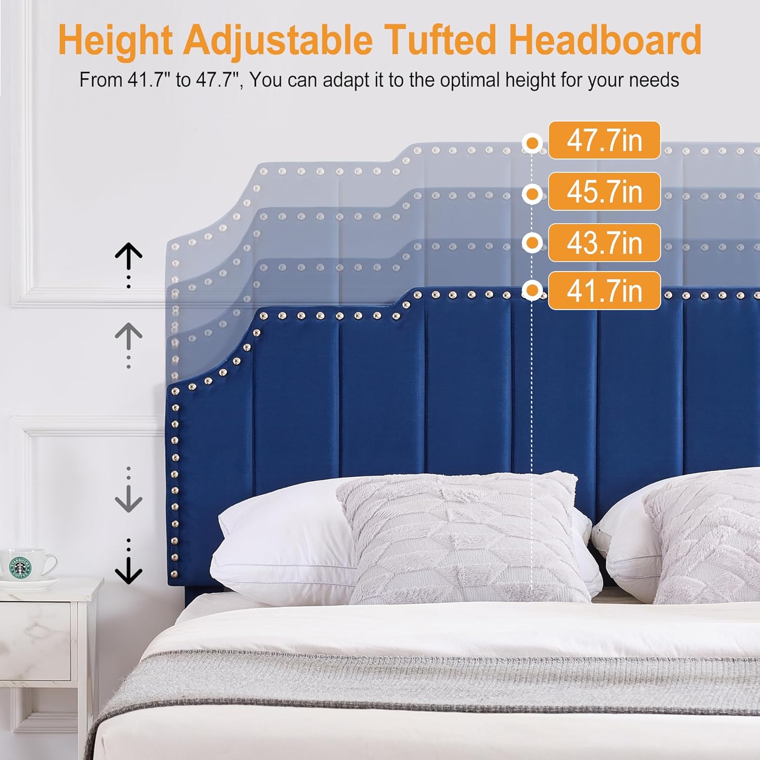 | Item Type Name | with Nailhead Trim,Tufted Height Adjustable Headboard,Vintage Bed with Wooden Slats/No Box Spring Needed/Under Bed Storage Space/Easy Assembly |